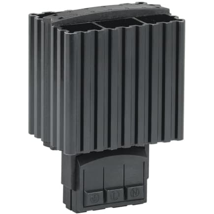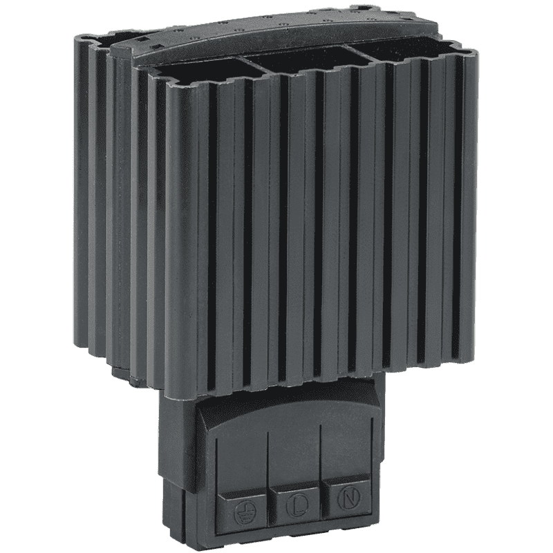 Обогреватель на DIN-рейку предназначен для нагрева воздуха внутри электротехнических шкафов. Создаваемый конвекционных воздушный поток предотвращает образование областей с низкой температурой и защищает электрические компоненты от образования конденсата и замерзании при перепадах температуры, а также коррозии металлических элементов активного оборудования. Наличие калорифера с саморегулированием обеспечивает естественную циркуляцию нагретого воздуха внутри шкафа и позволяет избежать перегрева. При установке в паре с терморегулятором используется для поддержания требуемой температуры внутри шкафа и организации стабильной работы установленного оборудования.Может быть использован в электрооборудовании переменного тока частотой 50 Гц и напряжением до 230 В. Динамическая система нагрева воздуха максимально эффективна при длительных режимах работы. Подключение посредством зажимов делает монтаж максимально простым и быстрым.