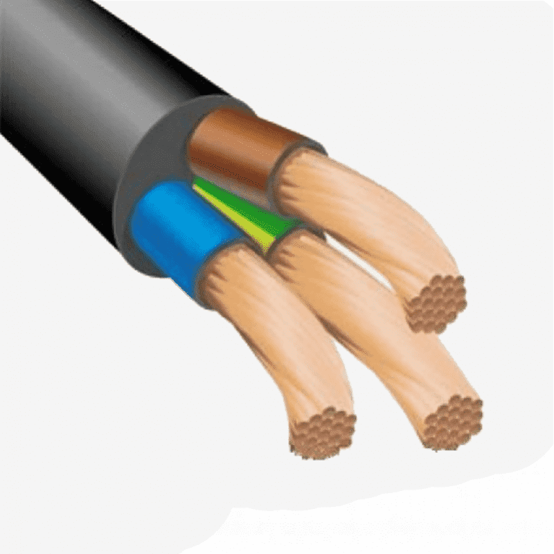 Элементы конструкции: Токопроводящая жила скрученная из медных (КГ, КГ-ХЛ) или медных лужёных (КГ-Т) проволок (класс 5); Слой из полиэтилентерефталатной пленки марки ПЭТ-Э; Изоляция из резины типа РТИ-1 или РТИ-1-ХЛ на основе натурального и бутадиенового каучуков. Маркировка изолированных жил: • цифровая: 1, 2, 3, 4, 5, жила заземления - 0, • цветовая: голубой, черный, коричневый, жила заземления - зелёно-жёлтая; Слой из полиэтилентерефталатной пленки марки ПЭТ-Э (поверх скрученных изолированных жил); Оболочка из резины типа РШТ-2, РШТМ-2-ХЛ на основе изопренового и бутадиенового каучуков; изоляционно-защитная оболочка одножильных кабелей из резины типа РТИШМ, РТИШ-ХЛ на основе изопренового и бутадиенового каучуков. Область применения: Силовые гибкие кабели предназначены для присоединения передвижных механизмов к электрическим сетям на номинальное переменное напряжение 660 В частоты до 400 Гц или постоянное напряжение 1000 В. Предназначены для эксплуатации на суше, реках и озёрах в макроклиматических районах с умеренным, холодным (КГ-ХЛ) и тропическим (КГ-Т) климатом, на открытом воздухе и в помещениях. Вид климатического исполнения кабелей У, ХЛ, Т категорий размещения 1, 2, 3 по ГОСТ 15150. Устойчивы к воздействию солнечного излучения. Кабели марки КГ-Т стойки к поражению плесневыми грибами. Срок службы - 4 года.