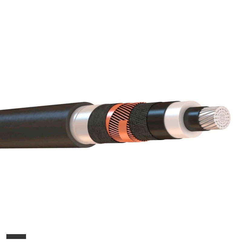 Элементы конструкции: Круглая многопроволочная уплотненная токопроводящая жила из алюминия, сечение – 50–1000 кв. мм; Экран по жиле из экструдируемого электропроводящего сшитого полиэтилена; Изоляция из сшитого полиэтилена (Пв); Экран по изоляции из экструдируемого электропроводящего сшитого полиэтилена; Разделительный слой из электропроводящей ленты; Экран из медных проволок, скрепленных медной лентой: - сечением не менее 16 кв. мм для кабелей с сечением жилы 35–120 кв. мм, - сечением не менее 25 кв. мм для кабелей с сечением жилы 150–240 кв. мм, - сечением не менее 35 кв. мм для кабелей с сечением жилы выше 300 кв. мм. Примечание: сечение экрана выбирается в зависимости от токов короткого замыкания, которые необходимо рассчитать согласно условиям прокладки кабельной линии. Возможно изготовление кабеля с увеличенным сечением экрана. Разделительный слой из стеклоленты; Оболочка из негорючего ПВХ-пластиката.