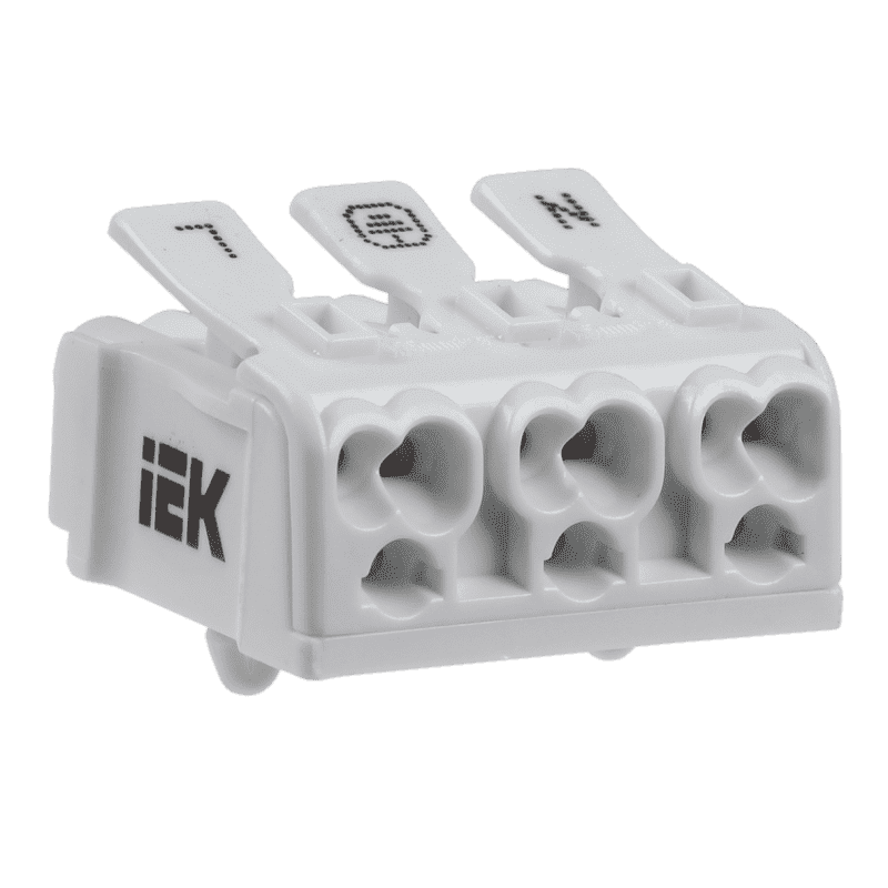 Клеммы пружинные соединительные КСП торговой марки IEK предназначены для присоединения и ответвления одножильных и многожильных медных проводников в электрических цепях переменного тока напряжением до 450 В частоты 50 Гц при температуре окружающего воздуха от минус 60 до плюс 40 С.В зависимости от своей конфигурации, клеммы КСП IEK включают в себя типовые схемы подключения фазных проводников, нулевого рабочего и защитного проводников, объединенные в единый корпус.Все клеммы КСП IEK снабжены самонажимными и нажимными контактами, отдельные модели клемм КСП имеют монтажную ножку, внешний металлический винтовой контакт заземления, или оба приспособления одновременно.