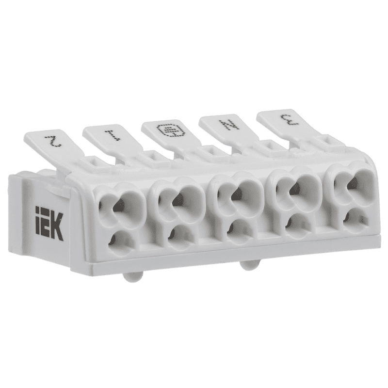 Быстрое и надежное соединение проводников без применения профессионального инструмента и специальных навыков.От двух до пяти входных отверстий в одном корпусе.Каждая клемма имеет маркировку на подвижной части для удобства монтажа.Наличие отверстий в верхней части корпуса клеммы для измерения электрических параметров цепи без отсоединения.